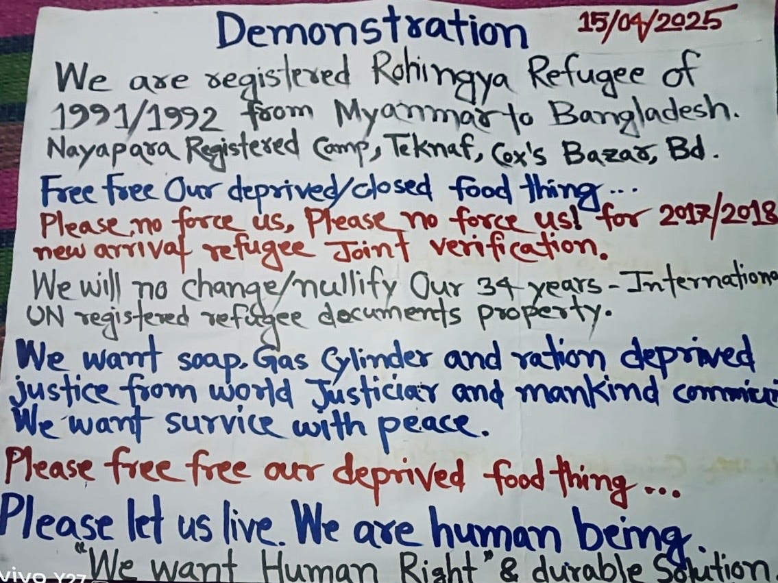 I appeal to UNHCR, WFP, the Government of Bangladesh, and the international community to immediately restore assistance and ensure that refugees like me can access life-saving treatment without being forced into biometric registration.