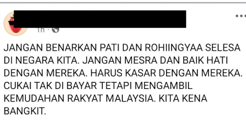 It matters because it shows the ecology. The same spaces that build hatred against Rohingya are often building hatred against migrants and racialised outsiders more broadly. Rohingya are simply one of the most vulnerable targets because Malaysia’s legal structure already casts them as “illegal.”